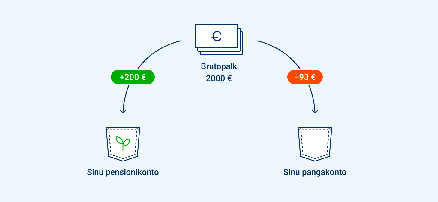 Toon konkreetse näite, kui sinu brutopalk on 2000 eurot kuus.