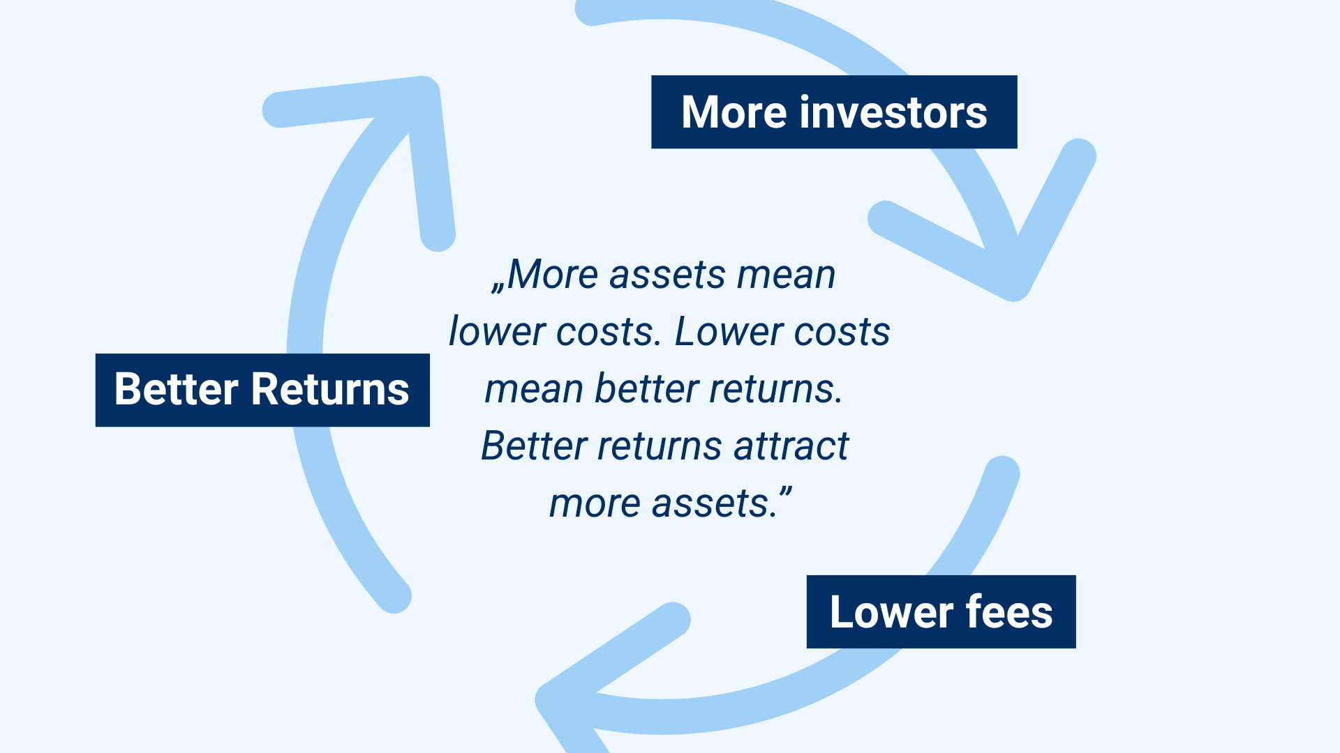 Investing is a volume-based business, and as the assets under our management grow, the costs per investor decrease. Every new euro added to Tuleva funds helps reduce fees for everyone.