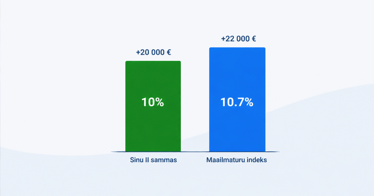 - Kõik võrdlused käivad samal ajaperioodi kohta. Kui võrdleme sind maailmaturu indeksiga, siis arvutame, kuidas sinu sissemaksed oleksid täpselt samal ajaperioodil ja samade summadega indeksis kasvanud. Nii on võrdlus aus.