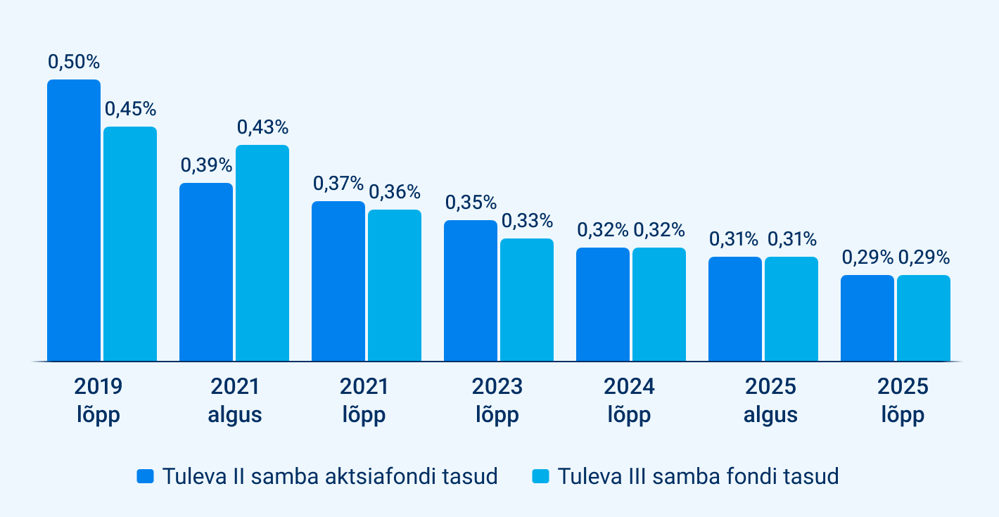 Nii saame tasusid langetada, samas jättes piisava puhvri liikmeboonuse maksmiseks ning võimaliku turulangusega toime tulekuks. Alates 1. detsembrist 2025 langetame kõikide Tuleva fondide tasud 0,29%-ni.